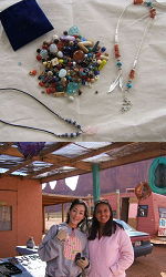 以前お教室に通っていて下さった生徒さんからステキなお知らせが届きました。昨年の春にご主人のお仕事の為デトロイトに赴任なさった方です。(お写真の左側の方です) モニュメントバレーへご旅行の際に、インディアンの方々のアクセサリーをお求めになられたようで、またそのときにお求めになったビーズなどのパーツの写真も送ってくれました。インディアンジュエリーは今まであまり研究をしたことがなかったので、彼女からのお便りを拝見していましたらググッと興味が湧いてきました。 デトロイトにお引越しなさってから数ヵ月後に「ビーズを通してお仲間が出来ました★」とお便りを頂きました時はとっても嬉しかったです。きっと知らない土地に不安いっぱいで移られた彼女のお気持ちを考えますと、"ビーズ"がそんな気持ちに少しパワーを与え、そして新しいお友達を作るきっかけになったことを大変嬉しく思いました。 これからもビーズレポートfromデトロイトを楽しみにしております♪ (2005.5.24[Tue])