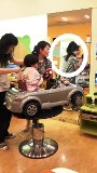 娘を連れて新宿タカシマヤへお出かけ。右のお写真は娘の美容院の様子。 新宿タカシマヤにあるキッズ専用のヘアサロンへ行ってきました。 お店の中が本当にカワイイの!! キッズか座る椅子は車や飛行機になっていて、前にはDVDがセット☆ 好きなDVDを観ながらスタイリングしていただけます。 (ちなみに彼女はシルバーのアウディのお椅子&アンパンマンのDVDでお願いしました。) アメリカで育っているのでアンパンマンをほとんど見たことが無い彼女は、すごーく不思議そうにDVDを観ていましたよ。 っとわいわい楽しんでいるうちに、スタイリング終了♪ 親子で楽しいサロンでした。 (2009.6.21[Sun])